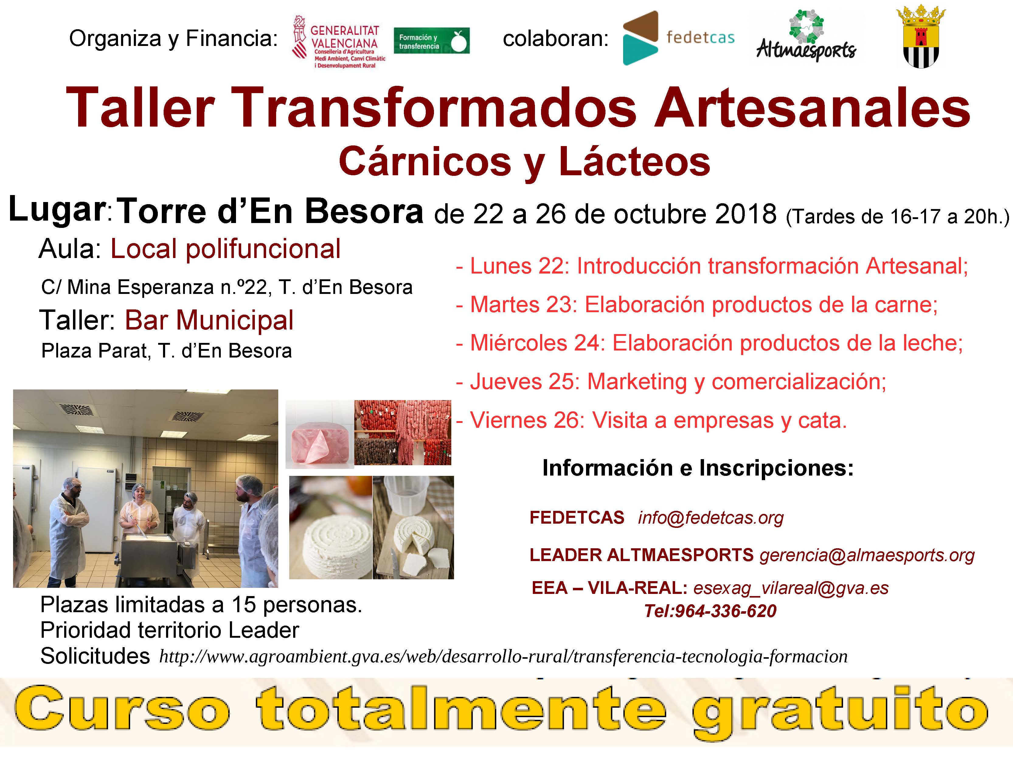 La Conselleria de Agricultura, Medio Ambiente, Cambio Climático y Desarrollo Rural organiza una serie de 5 cursos sobre Transformación Artesanal de Productos Agrícolas en colaboración con FEDETCAS y sus socios GAL rurales.